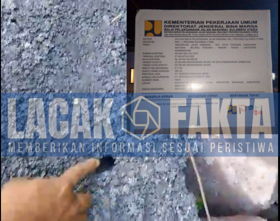 LacakFakta.com/Sulut,– Proyek preservasi jalan Airmadidi, Sulawesi Utara, kini menjadi simbol proyek gagal dengan dugaan korupsi yang semakin menggila. Hasil investigasi di lapangan mengungkap fakta yang mencoreng: beton jalan mudah hancur hanya dengan tekanan ringan jari.