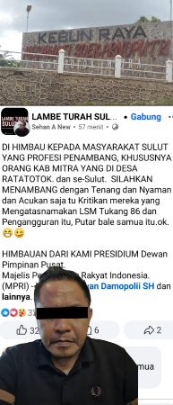 Desakan ini muncul setelah Sehan Ambaru terang-terangan menyerukan melalui media sosial agar pelaku PETI tetap beraktivitas, meskipun jelas melanggar hukum dan merusak lingkungan. (Rabu, 5 November 2025).