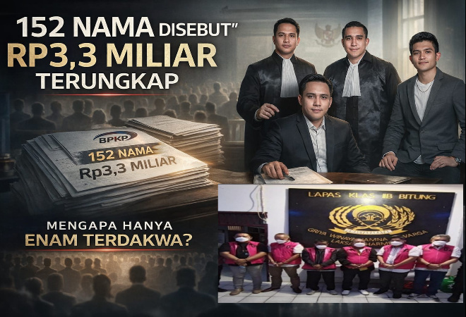 Menurutnya, apabila audit secara jelas menyebut 152 nama dengan pola administrasi yang sama, maka menjadi pertanyaan mendasar mengapa proses pidana hanya berhenti pada enam terdakwa! Apakah ada udang di balik batu?